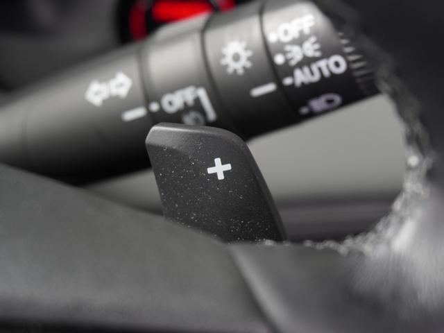 ◆減速セレクター装備◆ステアリングホイールの左右に取り付けられた2つのパドルスイッチで減速の強さを調整。左側の「-」を操作すると減速を強く、右側の「+」を操作すると減速を弱くすることができます。