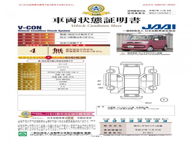 ◆車両状態証明書◆一般財団法人日本自動車査定協会京都府支所発行の車両状態証明書です。