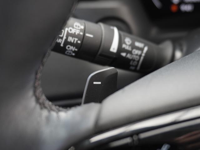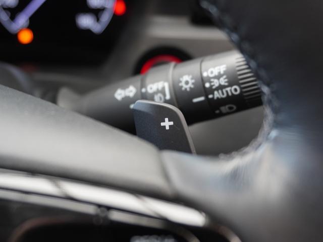 ◆減速セレクター装備◆ステアリングホイールの左右に取り付けられた2つのパドルスイッチで減速の強さを調整。左側の「-」を操作すると減速を強く、右側の「+」を操作すると減速を弱くすることができます。