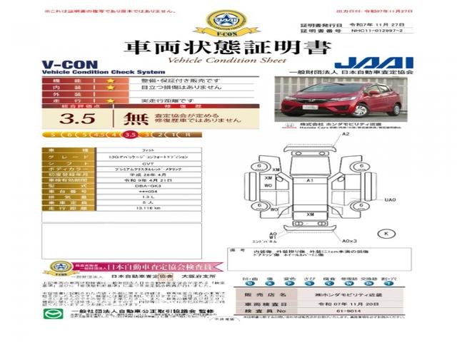 ◆車両状態証明書◆一般財団法人日本自動車査定協会京都府支所発行の車両状態証明書です。