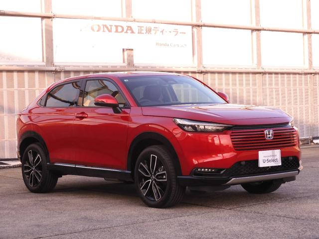 ホンダ ヴェゼルe:HEVZ デモカー 9インチナビ バックカメラ ドラレコ ETC2.0 アダプティブクルーズコントロール シートヒーター Bluetooth USB入力端子 LEDヘッドライト 衝突被害軽減ブレーキ 禁煙車