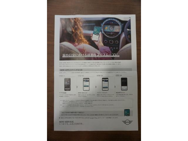 こちらのMINIはMINI専用アプリにログインできます!ドアのロック・アンロック、ヘッドライトの点灯、クラクションを鳴らすなど、スマートフォンから遠隔で操作可能。