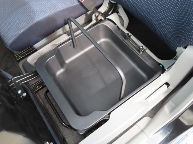助手席下のアンダーボックスも。内部は深いトレーで、取手付きだから車外に持ち出しも可能です。