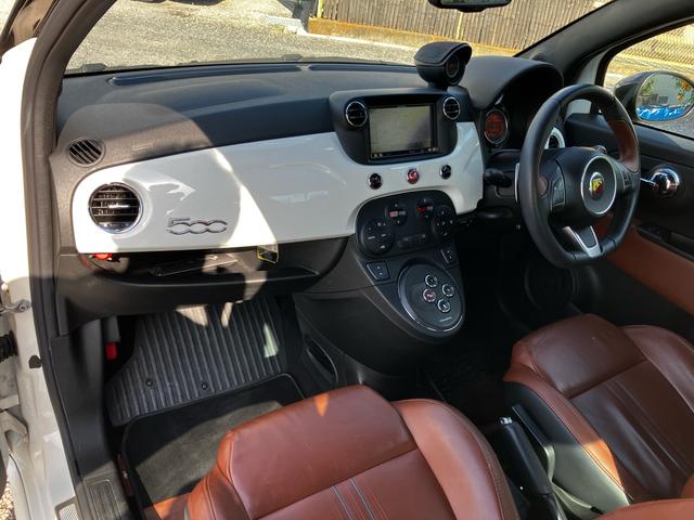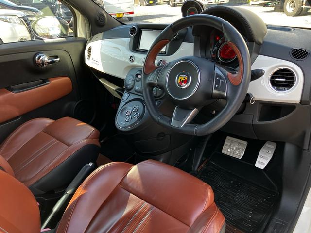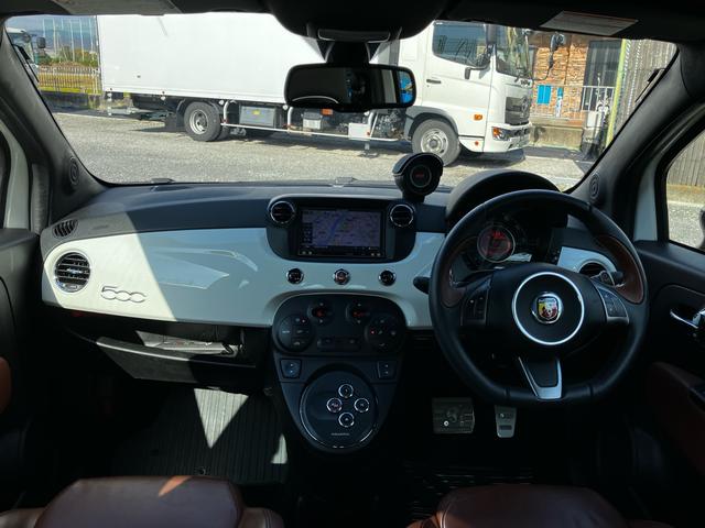 アバルト アバルト595ツーリズモ エッセエッセキット レコードモンツァマフラー ローダウン 茶本革シート ツートンカラー HID アルミホイール 社外ナビ フルセグ Bluetooth キーレス