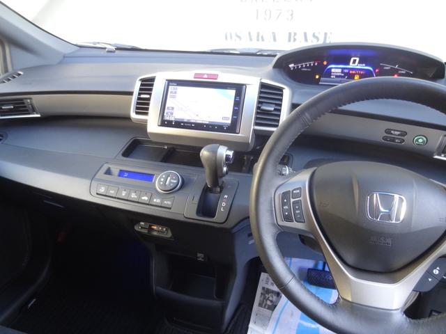ホンダ フリードスパイクハイブリッドジャストセレクション 両側Pスラ ハーフレザー クルコン スマートキー 革巻ハンドル フルフラット 純正AW 純正ナビ BT接続 フルセグ Bカメ HID Fフォグ オートライト オートエアコン ビルトインETC