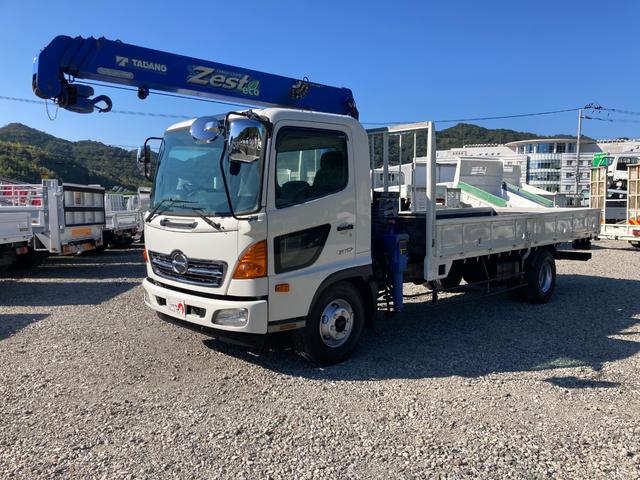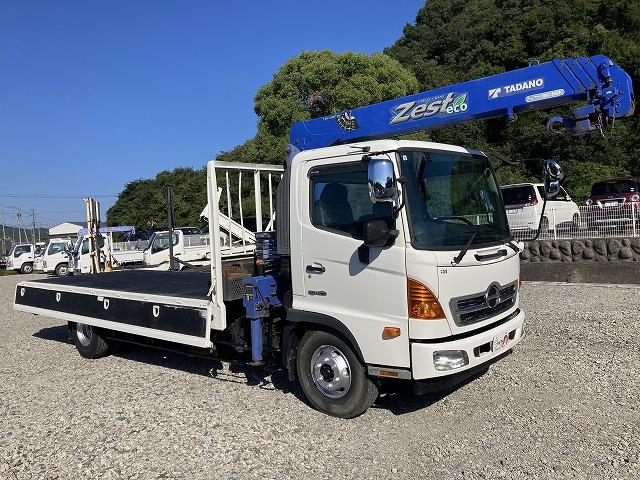 日野 ヒノレンジャー4段クレーン・6MT・平ボディ・フックイン ・4段クレーン・6MT・平ボディ・フックイン・電格ミラー・ロープ4対・メッキパーツ・サポートゲート・タダノZE304(同年式)・3ペダル・荷台内寸 L5422 W2136 H411