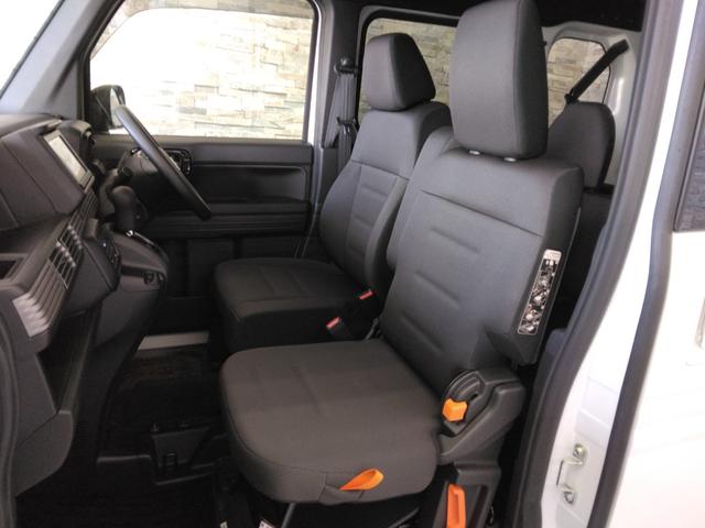 長時間の運転でも疲れにくい運転席シートと、足元へフラットに収納できる助手席シートです。