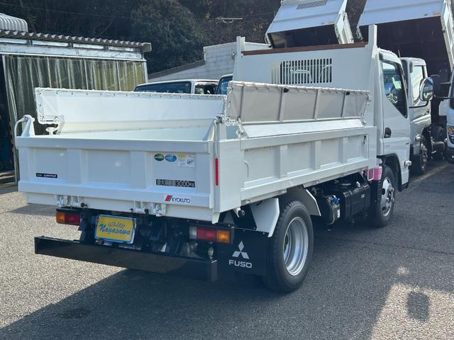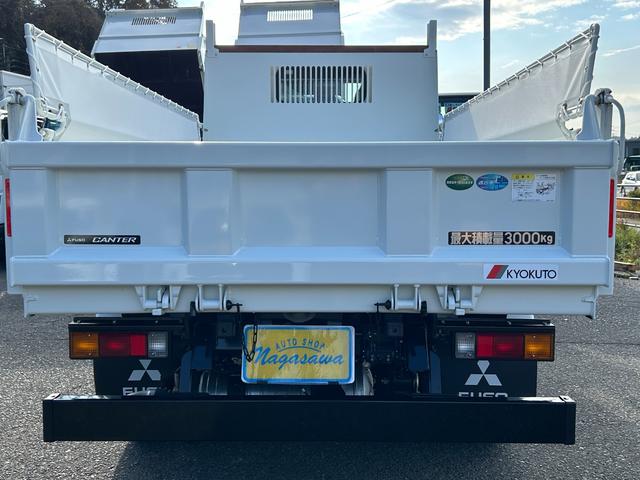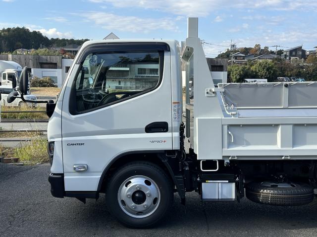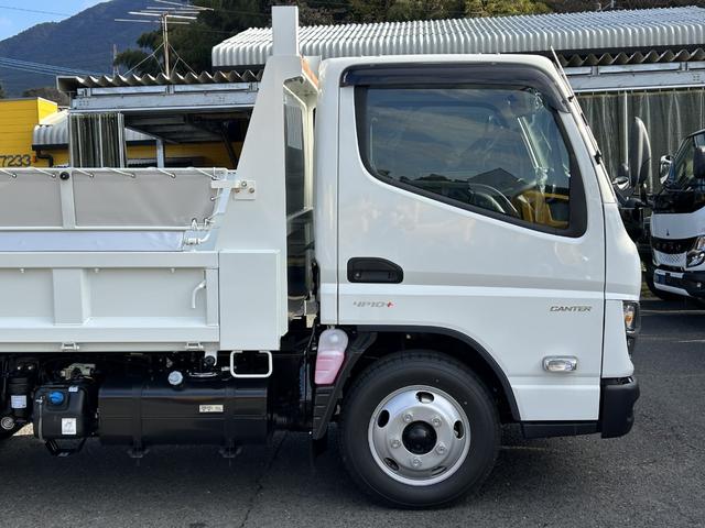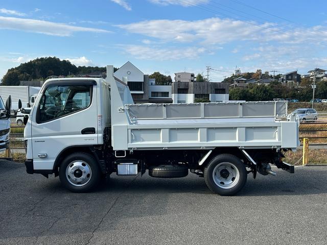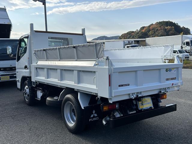 三菱ふそう キャンター 3t全低床強化ダンプ 衝突被害軽減ブレーキ 車線逸脱警報装置 車両安定性制御装置 リアビューモニター スマートキー LEDヘッドランプ コボレーン 中間ピン 枕木 角出し ブルートゥース内蔵型ラジオ