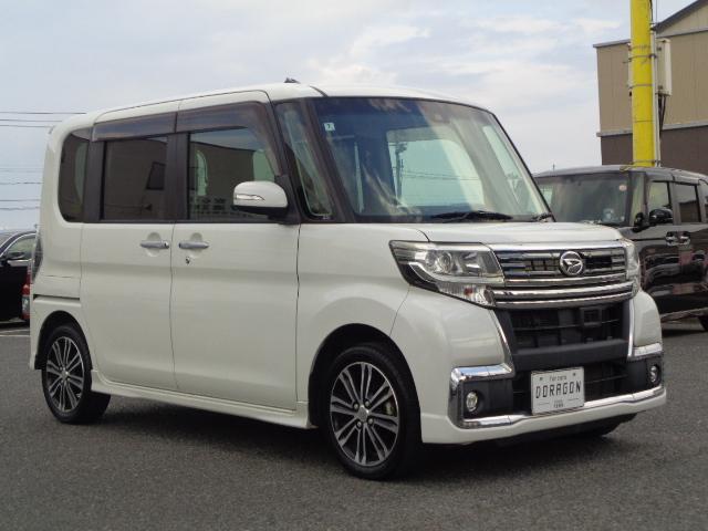 ダイハツ タントカスタムRS トップエディションSAII フルセグナビ DVD BT 両側パワスラ バックカメラ ブレーキサポート スマートキー×2 LEDオートヘッド ハーフレザー 純正AW ステリモ プッシュスタート