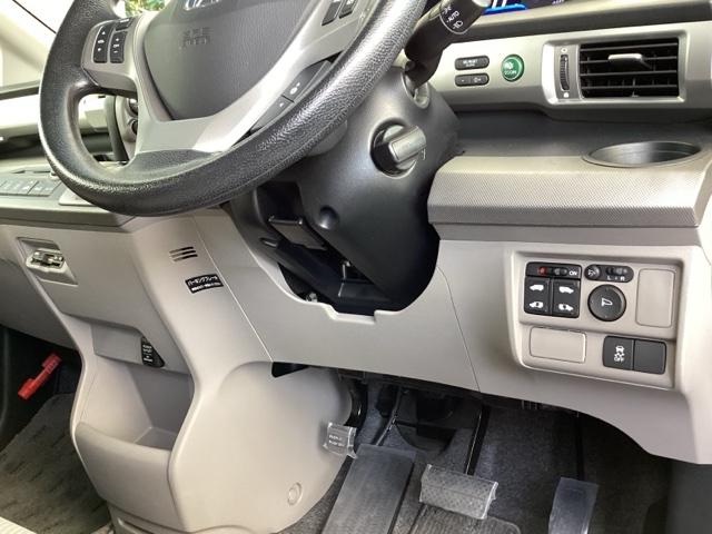 足元スッキリ、インパネシフトです。パーキングブレーキはフットブレーキタイプなので、運転席と助手席の間がスッキリしています。