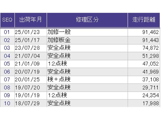 | 走行距離 | 9.1万km | 修復歴 | なし |