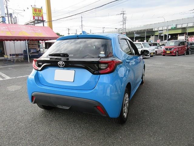 ヤリス入庫しました! 鮮やかなブルーのボディカラー☆ 純正8インチディスプレイオーディオ付き♪ 小回りも効く乗りやすい一台です! 是非一度ご来店いただき現車をご確認ください(^^)/