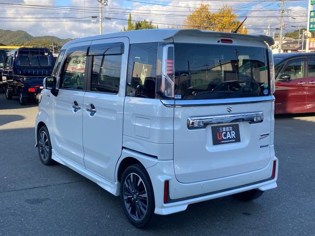 スズキ スペーシアカスタムハイブリッドXS 両側パワ-スライドドア 車線逸脱 スマキー ソナー キーレスエントリー アイドルストップ シートH フルフラットシート ナビTV オートエアコン ベンチシート サイドエアバッグ アルミホイール PS
