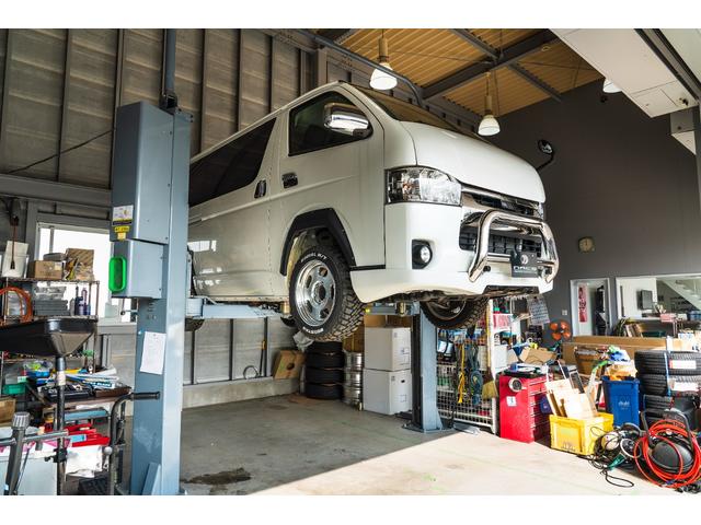 リフトも完備しておりますので、カスタムも受けたまわりますのでご相談下さい。