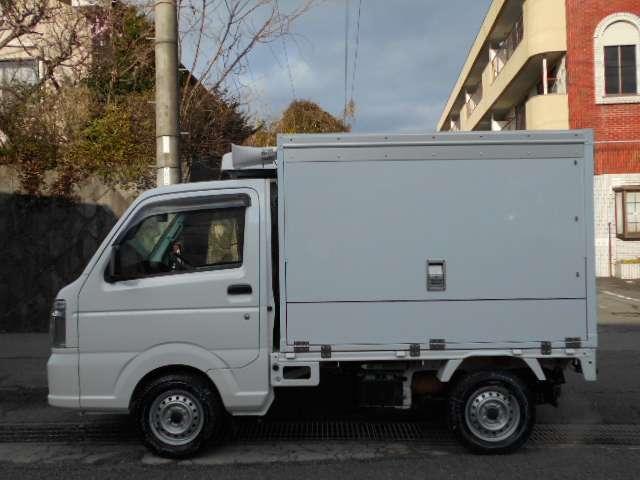 スズキ キャリイトラック 冷蔵冷凍機付移動販売車・2コンプレッサー・冷蔵冷凍ショーケース・商品陳列棚・外部スピーカー&マイク・3方跳ね上げ式・オートマチック・キーレス・パワーウィンドウ