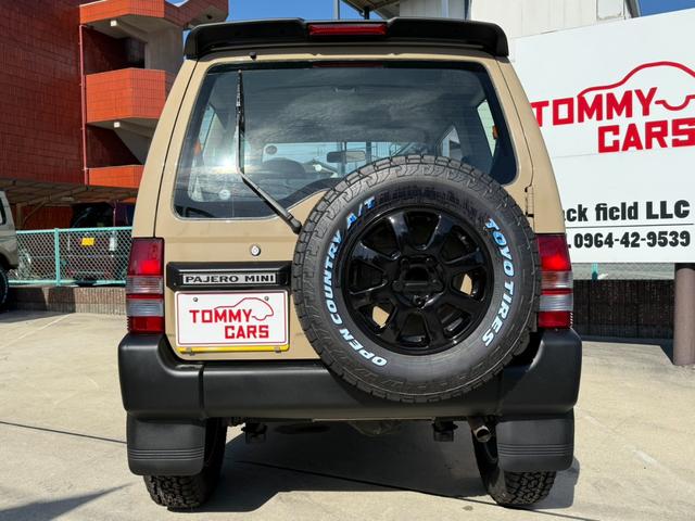 三菱 パジェロミニスキッパーV ベージュ全塗装/新品TOYOオープンカントリーAT5本/4WD/ターボ/車検R9年7月まで/社外LEDヘッドライト/ライトスモーク加工テールレンズ/ブラックM純正アルミ/AT/車検令和9年7/29まで