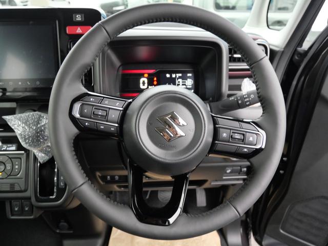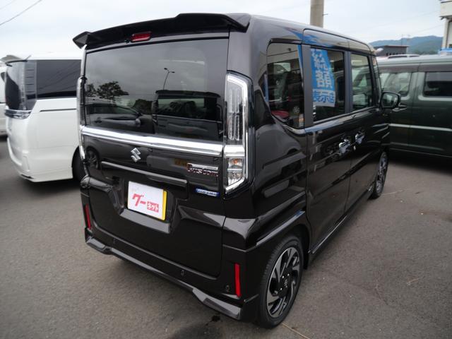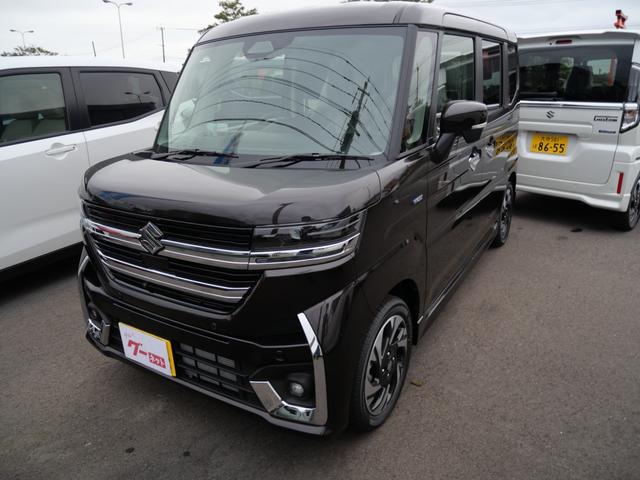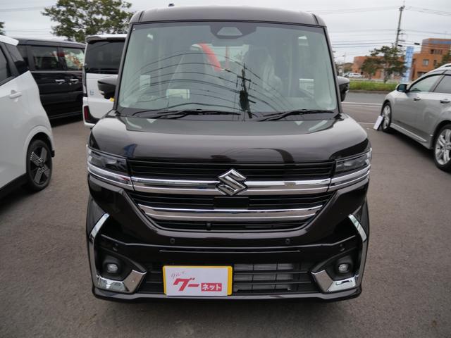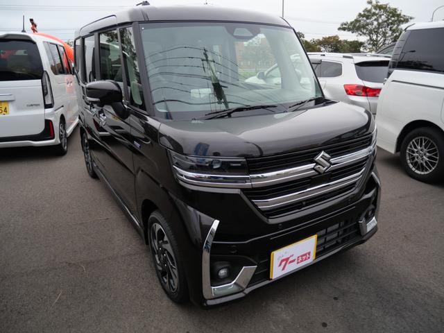 スズキ スペーシアカスタムハイブリッドXS 届け出済み未使用車 スマートキー プッシュスタート オートエアコン ヘッドアップディスプレイ ブレーキサポート シートヒーター ステアリングヒーター 両側電動スライドドア ナビ 全方位モニター