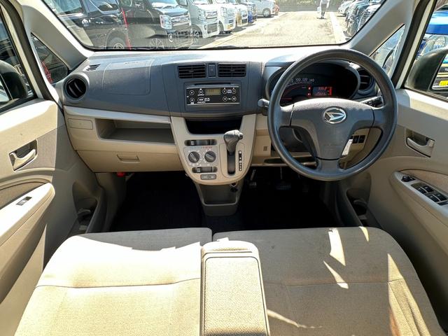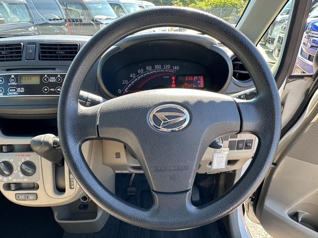 ダイハツ ムーヴL アイドリングストップ 盗難防止装置 電格ミラー キーレス 光軸調整ライト スペアキー CDオーディオ エアコン パワーウィンドウ PVガラス ドアバイザー ベンチシート 両席エアバック ABS