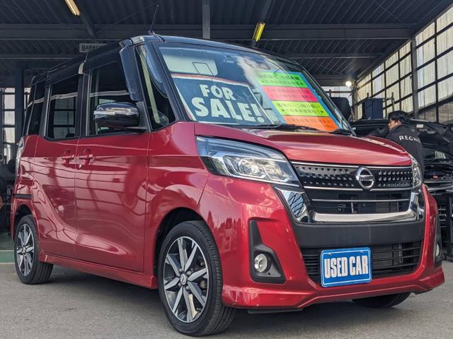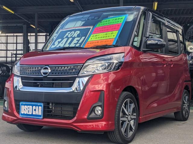日産 デイズルークスハイウェイスターX Gパッケージ 禁煙車 後期 純正SDナビ 両側パワードア 衝突軽減ブレーキ Bluetooth アラウンドビューモニター ドラレコ フルセグ オートハイビーム 革巻ハンドル 純正15AW LEDヘッドライト スマートキー アイドリングストップ