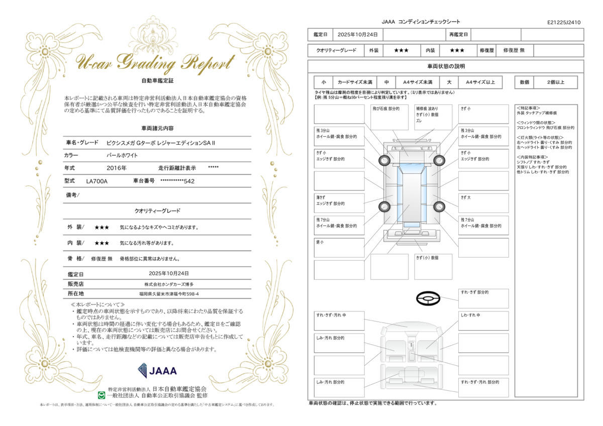 | 走行距離 | 11.2万km | 修復歴 | なし |