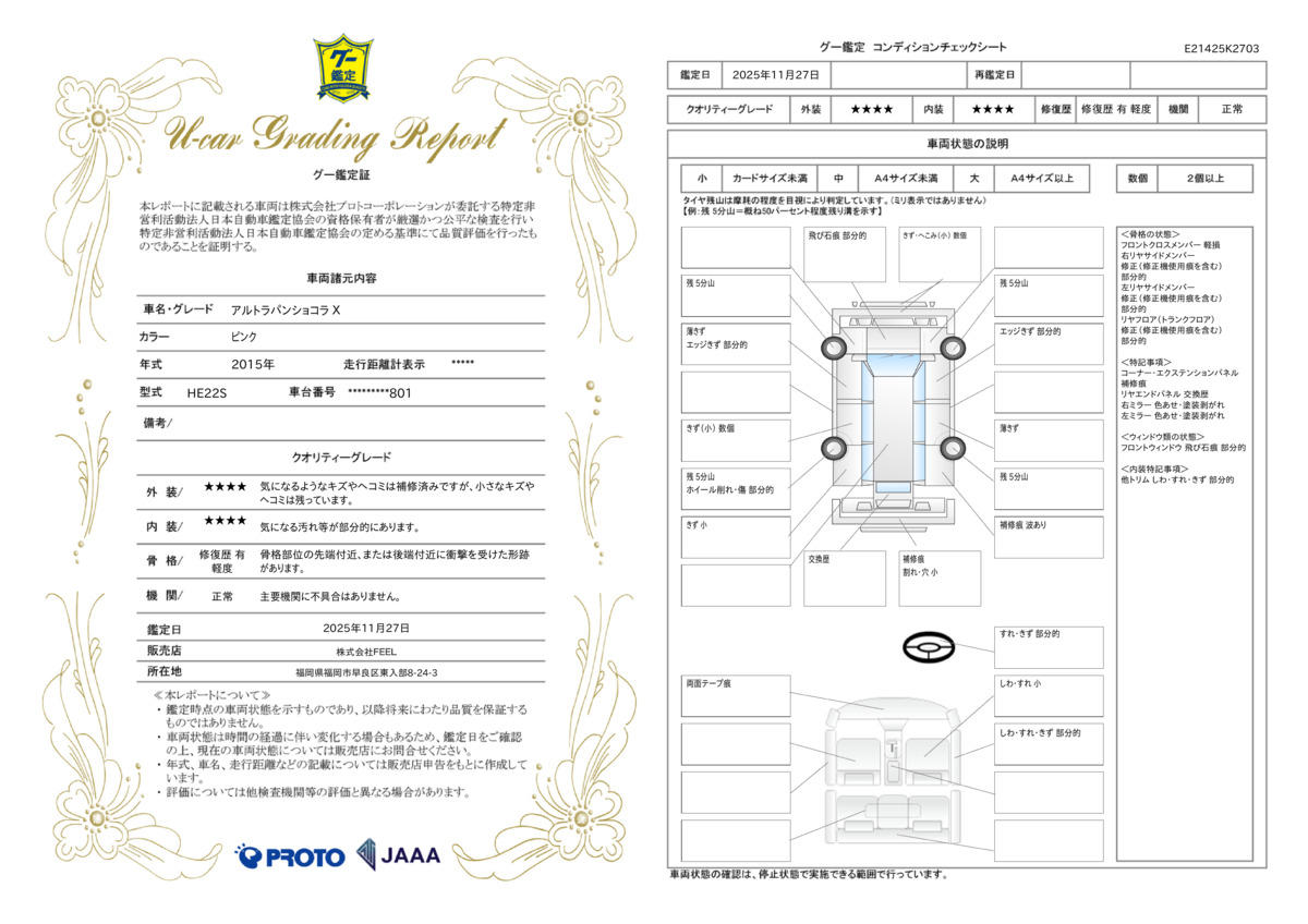 | 走行距離 | 5.0万km | 修復歴 | あり |