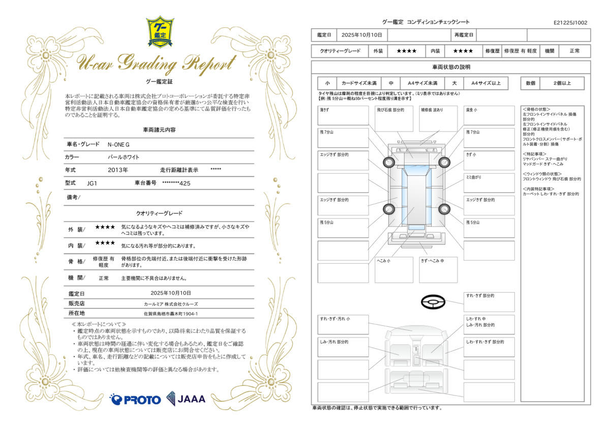 | 記録簿 | ー | 輸入認定中古車 | ー |