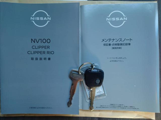 日産 NV100クリッパーバンDX ハイルーフ CDオーディオ Bluetooth ETC キーレス 集中ドアロック 4人乗 新車保証書 スペアキー パワーウィンドウ オートライト 光軸調整ライト USB入力 ドアバイザー オーバーヘッドシェルフ フルフラットシート パワステ エアコン