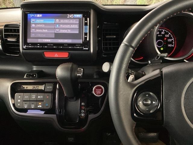 ホンダ N-BOXカスタム2トーンカラースタイルG・ターボLパッケージ 純正ナビ フルセグ リアカメラ キーレスエントリー パワーステアリング ナビTV 横滑り防止機能 パワーウィンドウ エアコン スマートキー ABS ETC車載器 クルーズコントロール DVD再生