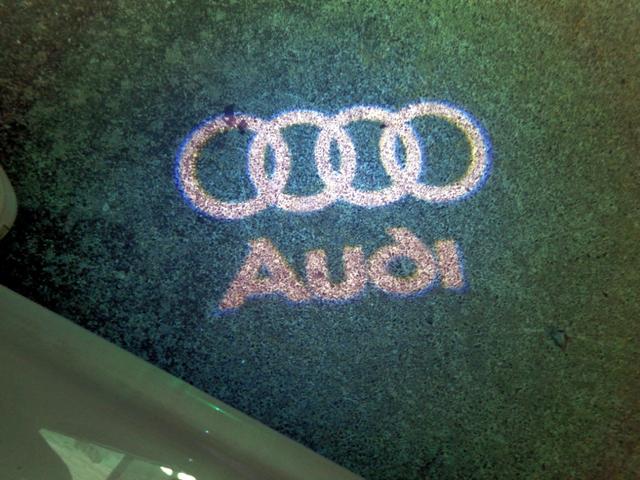 Audiロゴカーテシランプ=車のサイドドア下部に設置される照明で、ドアの開閉と連動して自動的に点灯し、乗降時の足元を明るく照らすほか、後続車にドアが開いていることを知らせる警告灯