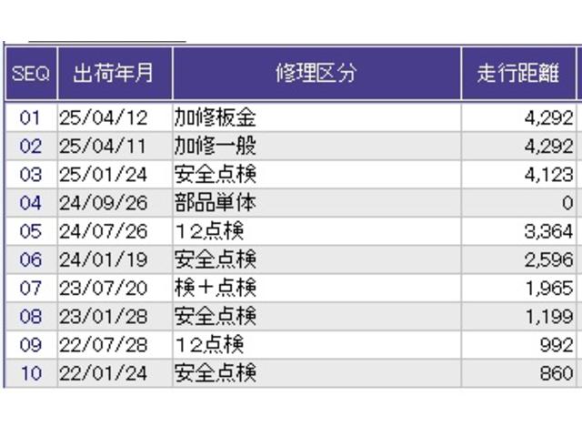 こちらの車両の整備歴になります。詳しくはスタッフにお尋ねください。