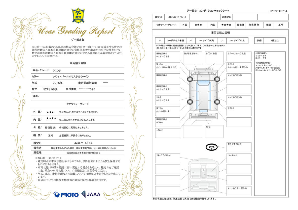第三者機関による鑑定を実施しています。専門家の厳しい目を通して最大324項目を厳しく検査しています。安心してご検討・ご購入ください。