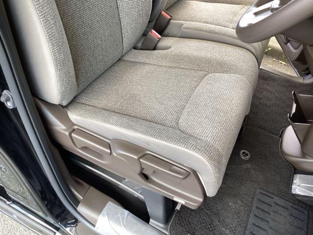 フロント広々、ベンチシートの運転席は、ハイトアジャスターが付いているので、快適にドライブができます。ハンドルはチルトステアリングで、ハンドル位置を上下に調節できます。