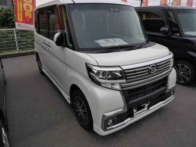 ダイハツ タントカスタムX トップエディションSAIII 衝突軽減ブレーキ オートマチックハイビーム 横滑り防止装置 アイドリングストップ 片側電動スライドドア ナビ バックカメラ スマートキー プッシュスターター LEDヘッドライト 純正エアロ