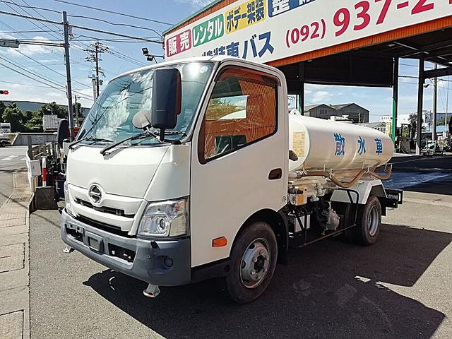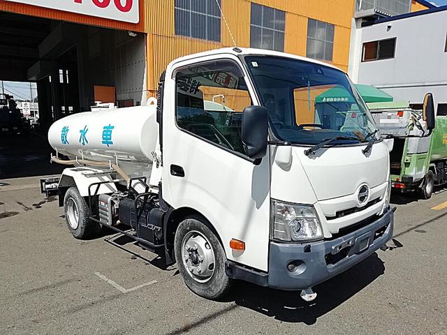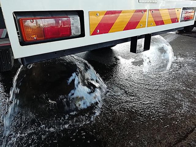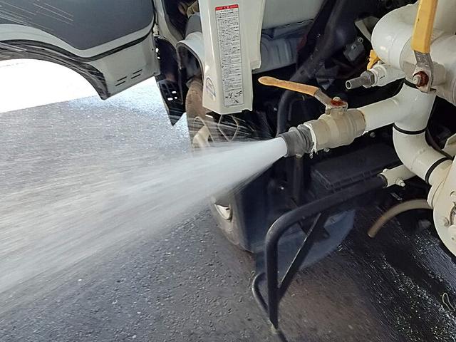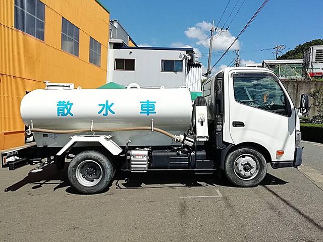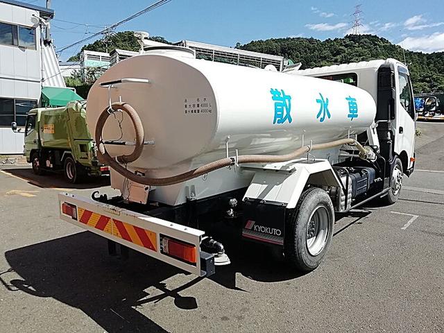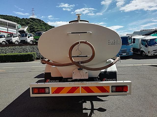 日野 デュトロ 4t 前後散水車 PTO式 内容量/4000リットル 品名/水 付属ホースあり 部屋/1室 吸引方式/PTO式