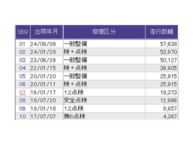 こちらの車両の整備歴になります。詳しくはスタッフにお尋ねください