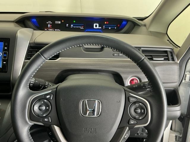 ステアリング右手側に安全運転支援機能のホンダセンシングをコントロールするスイッチ、左手側にオーディオ関連のコントロールスイッチを配置、視線を逸らすことなく運転に集中できます