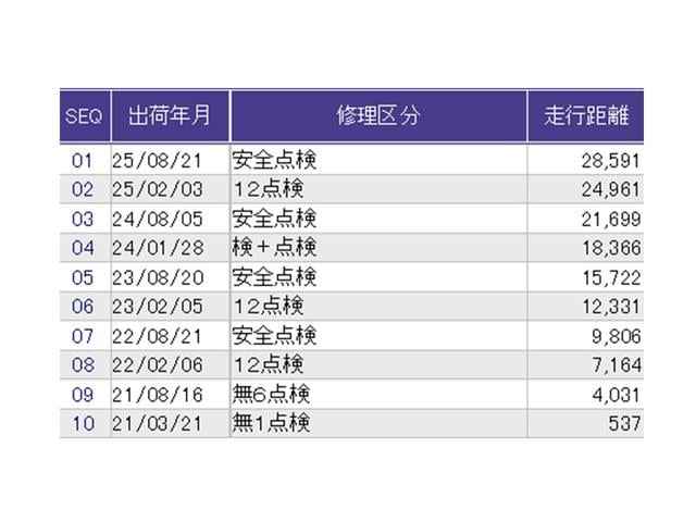 | 走行距離 | 3.1万km | 修復歴 | なし |