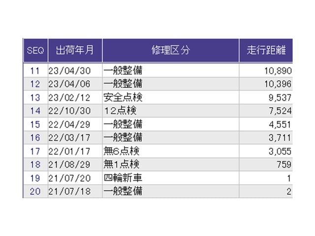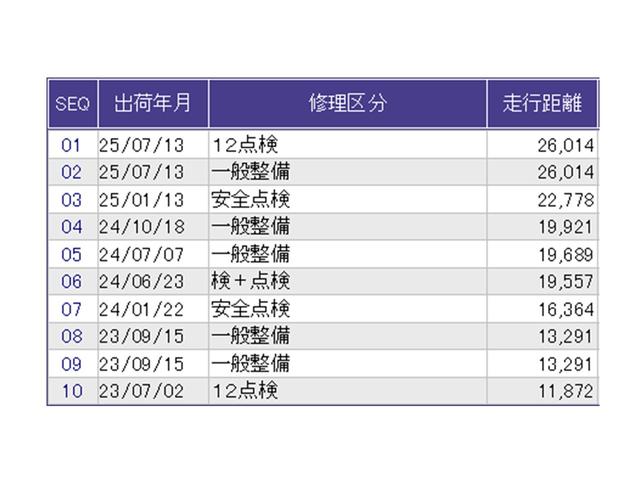 こちらの車両の整備歴になります。詳しくはスタッフにお尋ねください