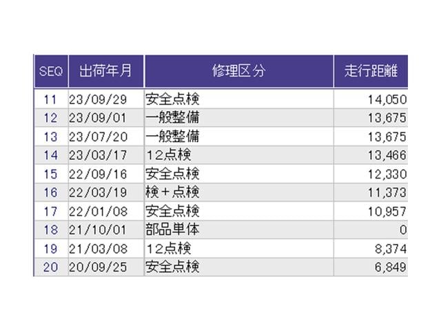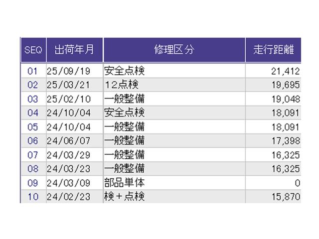 こちらの車両の整備歴になります。詳しくはスタッフにお尋ねください
