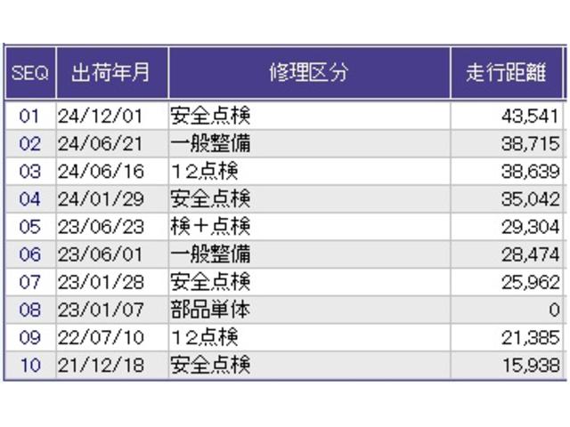 こちらの車両の整備歴になります。詳しくはスタッフにお尋ねください