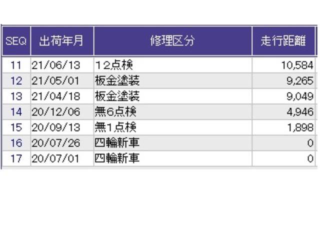 車両の整備歴は、弊社が行った整備の記録となります。車選びのご参考にどうぞ。