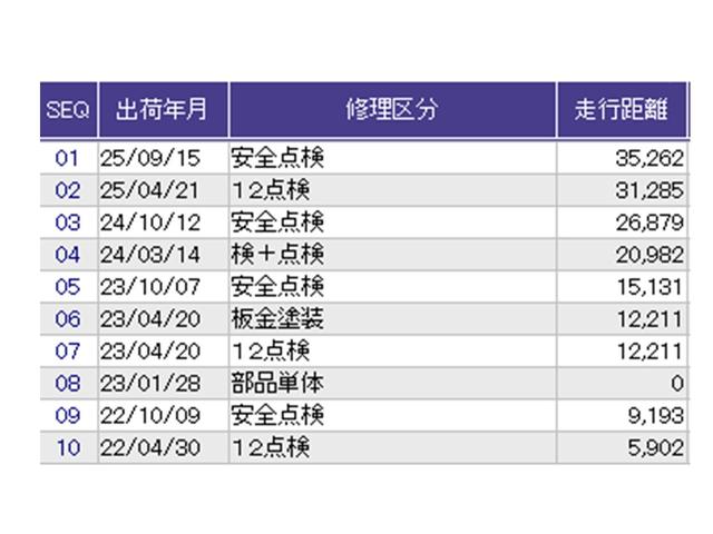 こちらの車両の整備歴になります。詳しくはスタッフにお尋ねください