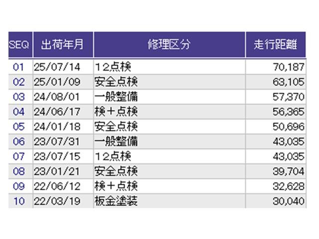 こちらの車両の整備歴になります。詳しくはスタッフにお尋ねください