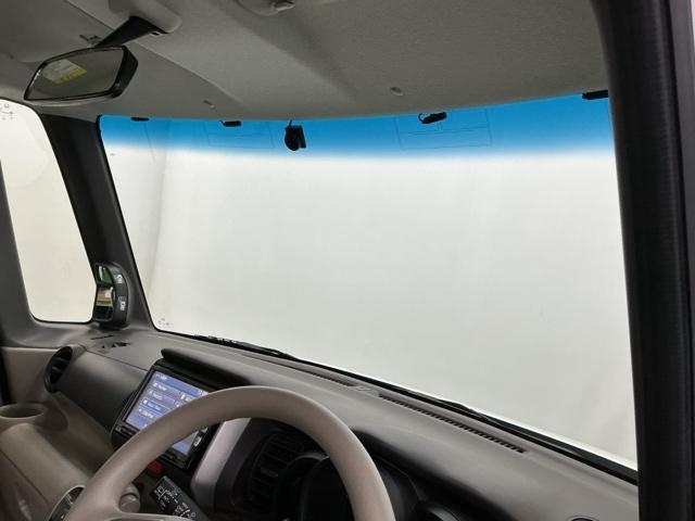 ハーフシェイドフロントウインドウ【Fガラス上端の青色透かし】を装備しています。広いフロントガラスで視界を確保しつつ眩しさを軽減、有と無しではずいぶん違いますよ