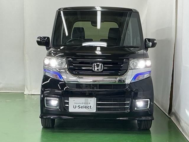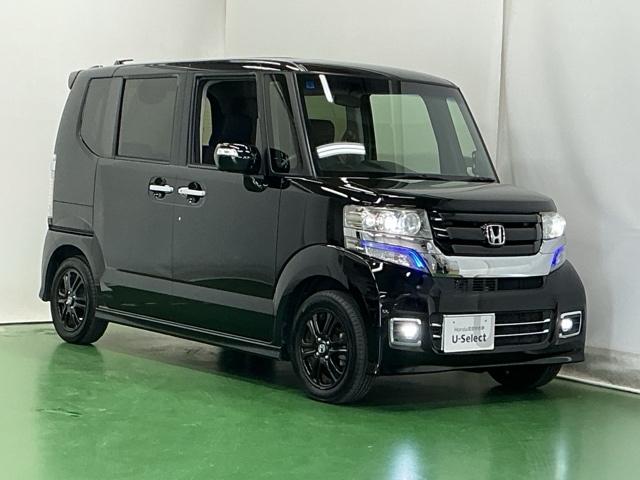 ホンダ N-BOXカスタムGSSブラックスタイルパッケージ ナビ Rカメラ ブルートゥース ワンセグ 左右パワースライド リアカメラ ETC付き 前席シートヒーター AAC パワステ パワーウィンドウ キーフリー 横滑り防止 エコアイドル スマートキー ABS