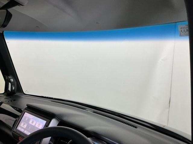 ハーフシェイドフロントウインドウ【Fガラス上端の青色透かし】を装備しています。広いフロントガラスで視界を確保しつつ眩しさを軽減、有と無しではずいぶん違いますよ