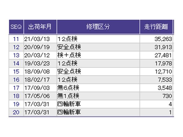 こちらの車両の整備歴になります。詳しくはスタッフにお尋ねください