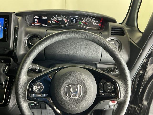 ステアリング右手側に安全運転支援機能のホンダセンシングをコントロールするスイッチ、左手側にオーディオ関連のコントロールスイッチを配置、視線を逸らすことなく運転に集中できます