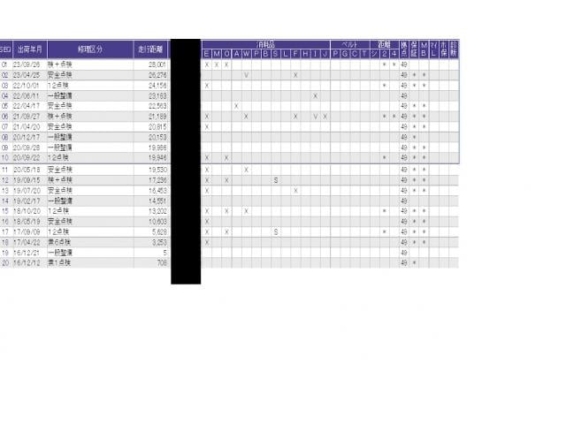 こちらの車両の整備歴になります。詳しくはスタッフにお尋ねください
