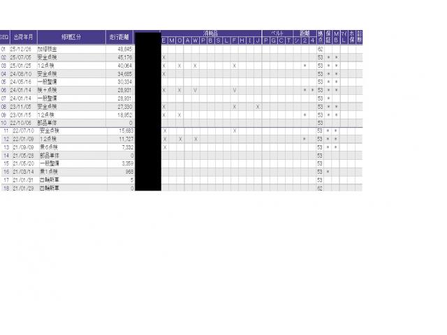こちらの車両の整備歴になります。詳しくはスタッフにお尋ねください